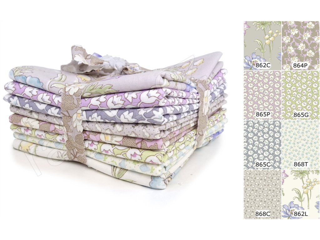 Fat Quarter - 8x 50x55cm = celkem 2 metry látky s jarním motivem s květinovými vzory. Cena za balení. 100% bavlna.