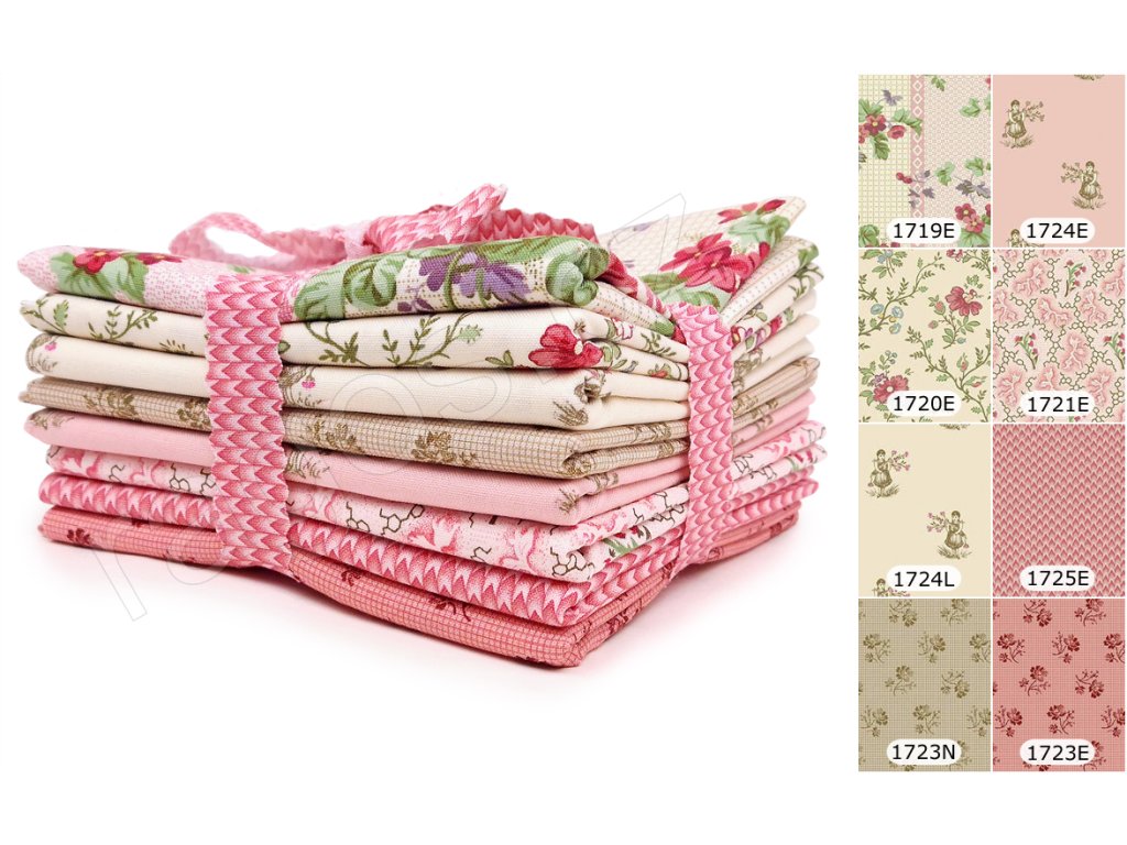 Fat Quarter - 8x 50x55cm = celkem 2 metry látky s květinovým a geometrickým motivem v růžových a smetanových odstínech z kolekce Ayla. Cena za balení. 100% bavlna.