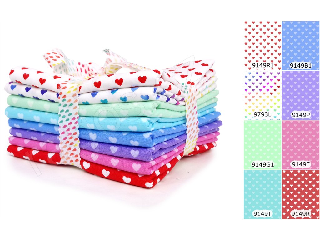 Fat Quarter - 8x 50x55cm = celkem 2 metry látky s motivem srdcí. Cena za balení. 100% bavlna.