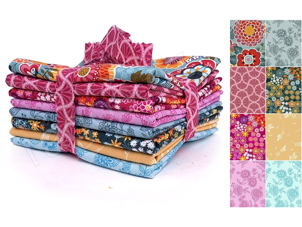 Fat Quarter - 8x 50x55cm = celkem 2 metry látky kolekce Revival s Art Deco motivem. Cena za balení. 100% bavlna.
