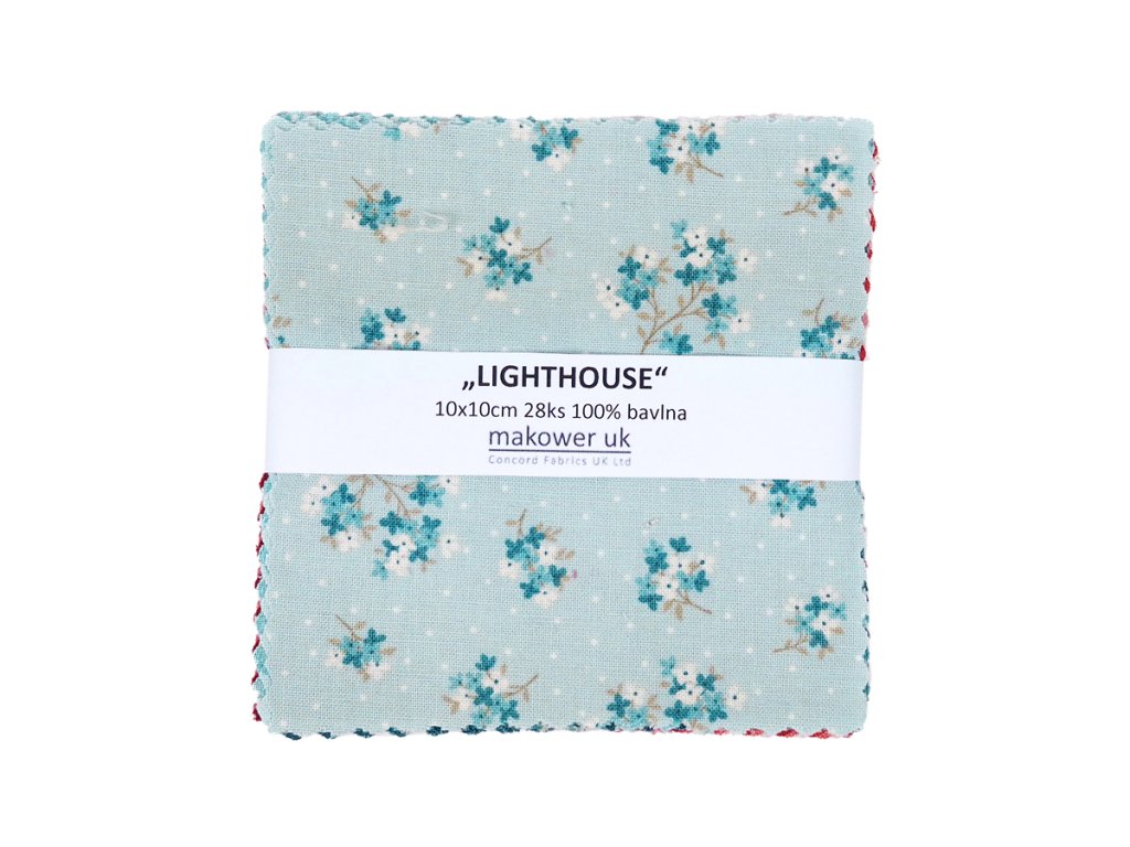 Kolekce látek Lighthouse od návrhářky Edyty Sitar s květinovými a geometrickými vzory 28 ks 10 x 10 cm, cena za balení.