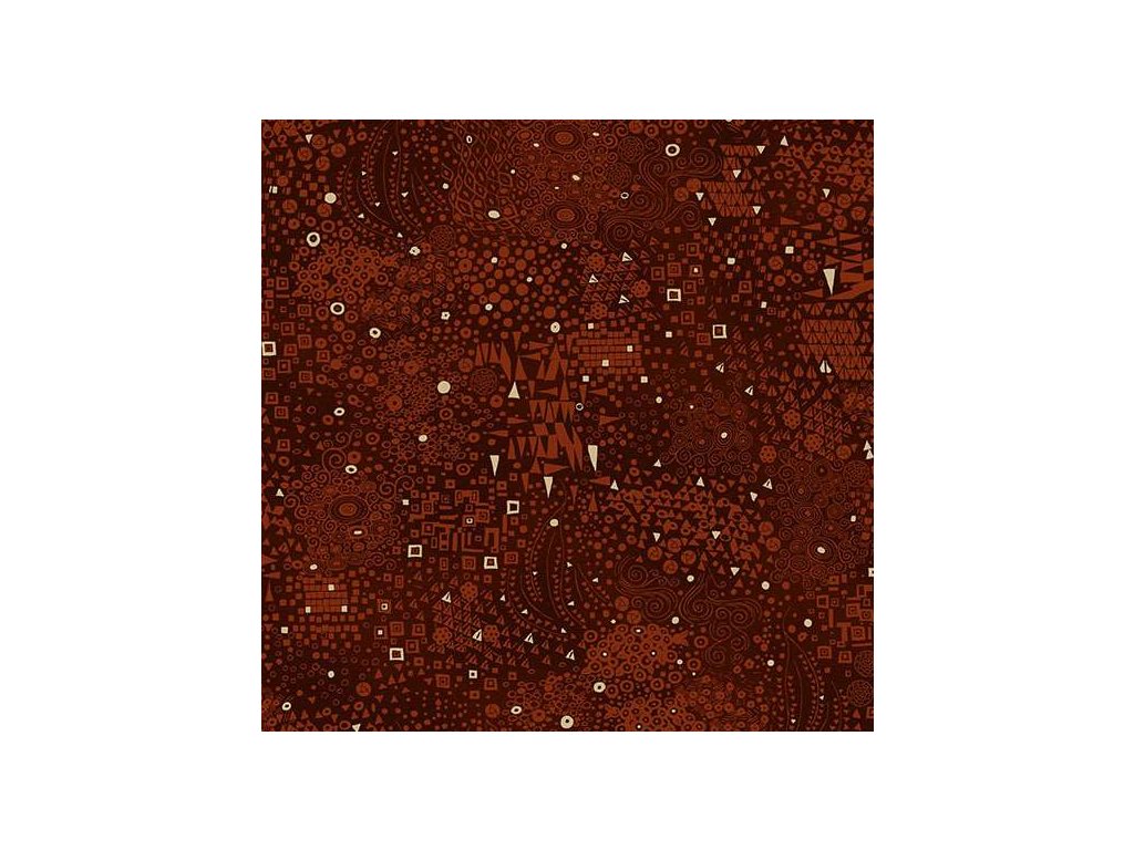 Látka s geometrickým motivem, vzor geometrické tvary se zlatým efektem na tmavě hnědém podkladu.