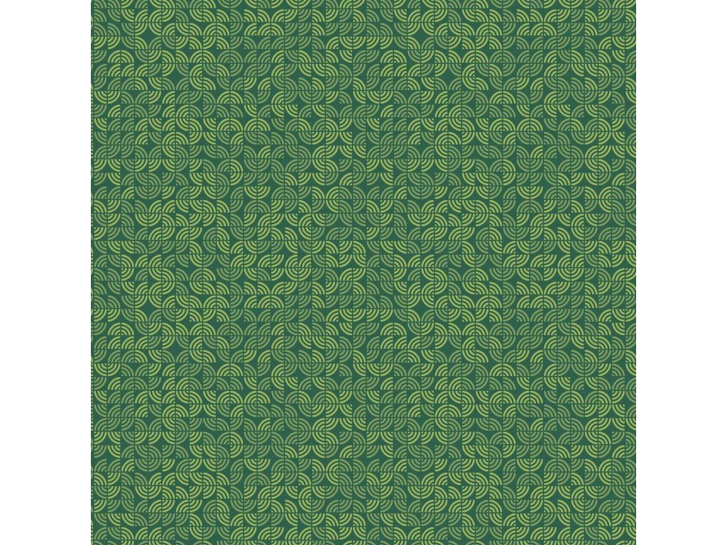 Látka s geometrickým motivem, světle zelený a zelený geometrický vzor na tmavě zeleném podkladu.