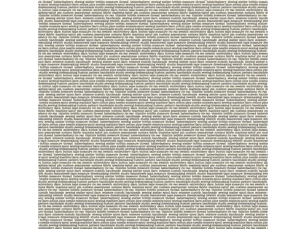 Látka s motivem šití, vzor slova na téma šití na smetanovém podkladu.