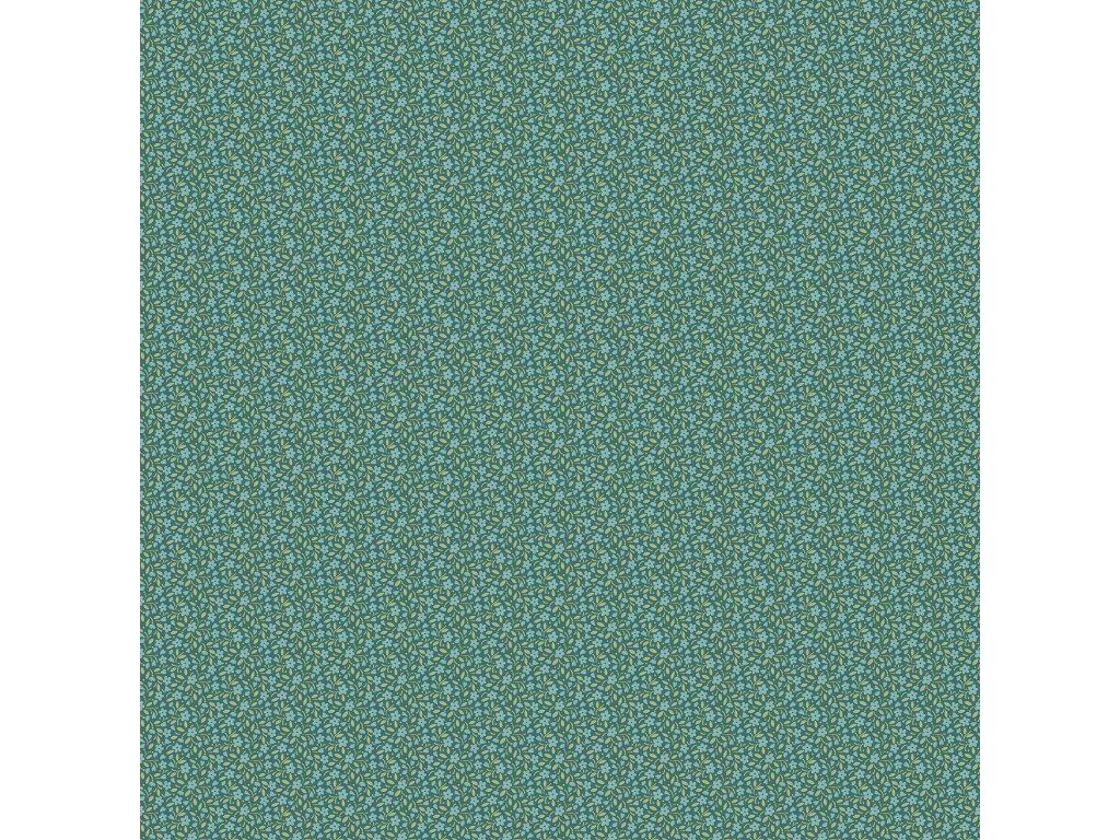 Látka s květinovým motivem, vzor tyrkysové květiny s listy na zeleném podkladu.