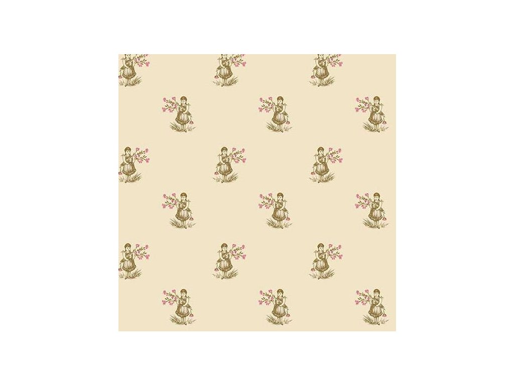 Látka s motivem postavy, vzor obrys dívky s lučním kvítím na béžovém podkladu.