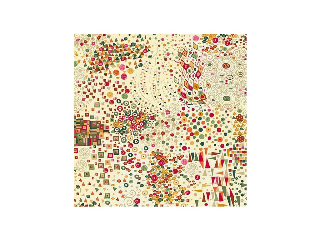 Látka s geometrickým motivem, vzor geometrické tvary se zlatým efektem na smetanovém podkladu.