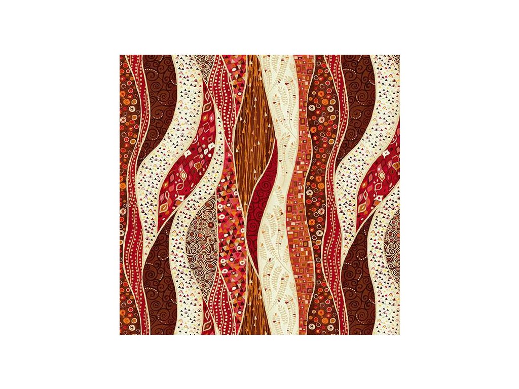 Látka s geometrickým motivem, vzor geometrické tvary ve vlnách se zlatým efektem na růžovém a smetanovém podkladu.
