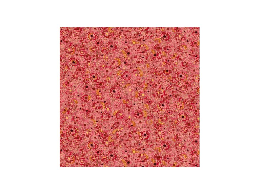 Látka s geometrickým motivem, vzor scroll se zlatým efektem na růžovém podkladu.