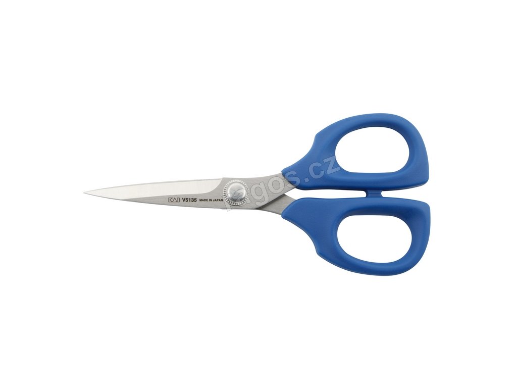 Nová řada V5000 Vylepšená konstrukce ruček se zvětšeným vnitřním prostorem pro čtyři prsty a s ergonomickým vybráním pro položení ukazováčku zaručující pevnější držení nůžek. Ručky vyrobeny z barevného elastomeru. Nová konstrukce břitů se sníženou ostrou špicí zaručuje plynulé vedení nůžek v látce. Velikost 135mm. Součástí balení je ochrané pouzdro břitu.