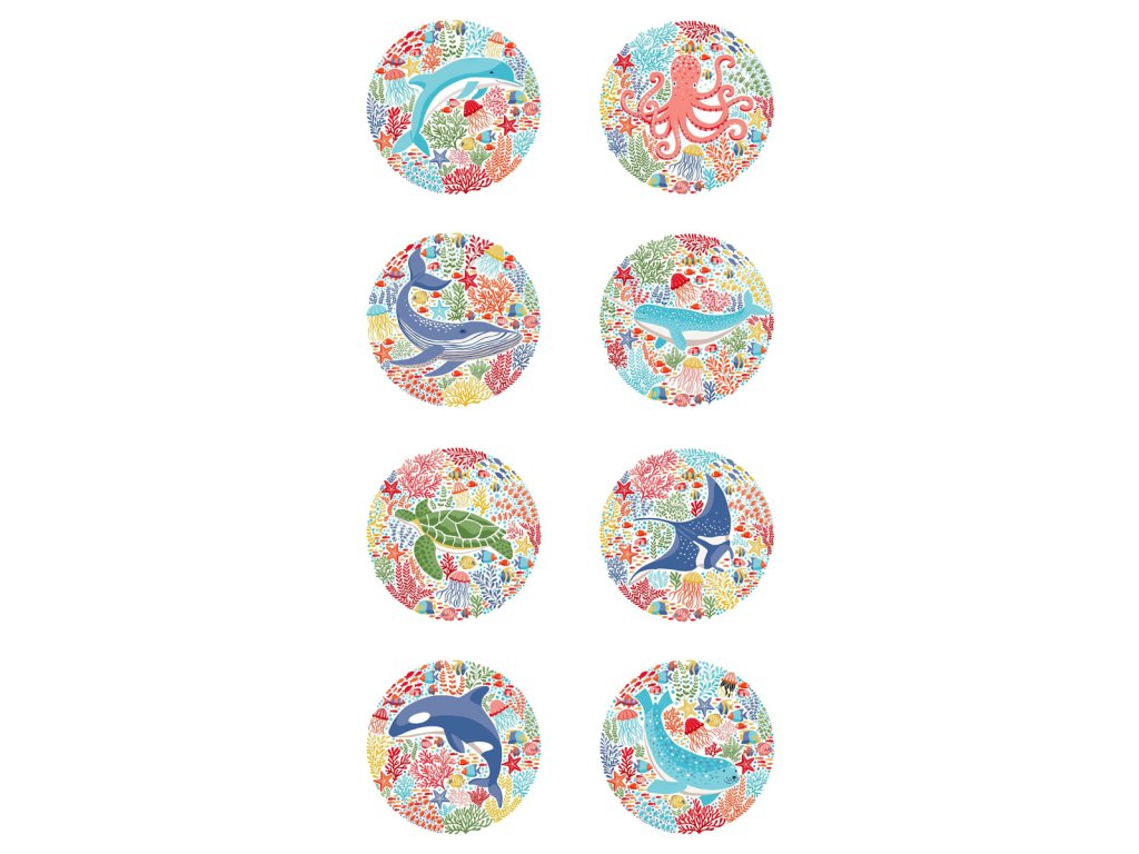 Panel s mořským motivem, vzor mořští živočichové na bílém podkladu.