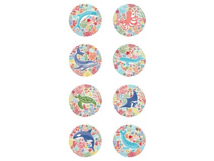 Panel s mořským motivem. 8 kruhových bloků, cca 22cm, 100% bavlna, dovoz. Panel 60x112 cm.Cena za kus.