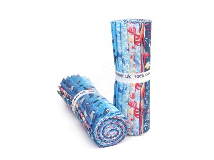 Výběr látek s mořským vzorem v modrých odstínech z kolekce Deep Blue Sea 12 druhů 15x55 cm. Cena za 1ks.