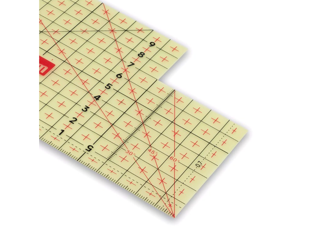 Měření, značení a žehlení v jednom kroku šetří čas a úsilí. Tento proces nejenže zjednodušuje práci, ale také zajišťuje konzistentní a přesné výsledky bez zbytečných chyb. Měřítko je také vybaveno úhlovými značkami 30°, 45° a 60° a rádiusy 2 cm a 3 cm, které vám umožní snadnou a přesnou přípravu různých typů švů. Délky 20 x 10 cm a pravoúhlý L-tvarovaný výřez zajišťují, že každý detail bude perfektně odpovídat vašim požadavkům.